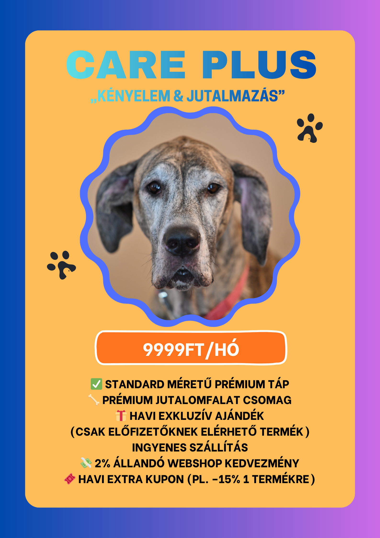 A Pöpi Care előfizetés azoknak a gazdiknak szól, akik nem szeretnének minden hónapban újra és újra döntéseket hozni, mégis biztosak akarnak lenni abban, hogy kedvencük megbízható minőségű, gondosan válogatott termékeket kap – pontosan időben.